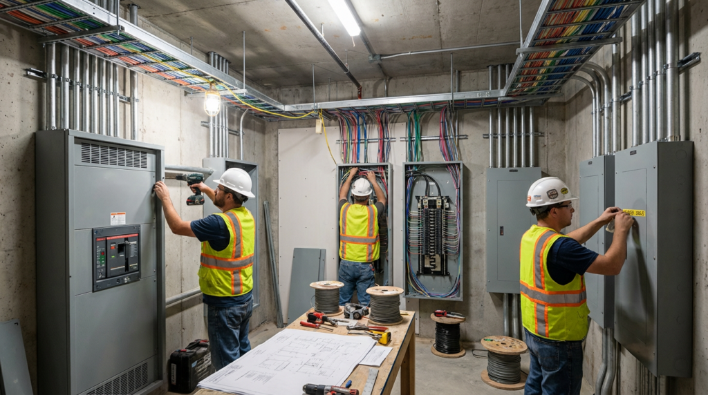 O projeto elétrico define o dimensionamento correto de circuitos, quadros, cabos, dispositivos de proteção e pontos de utilização, garantindo: